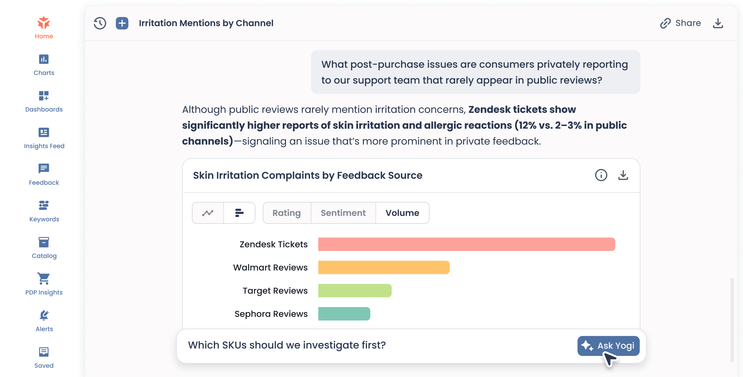 Yogi gives CX and Care teams the clarity to see what’s driving consumer frustration — and the credibility to influence change across Product, Quality, and Marketing.
